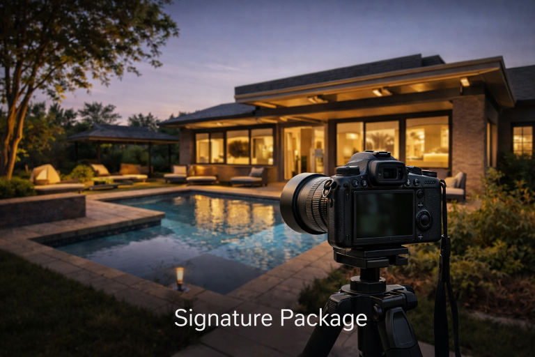 Designed for homes that warrant a more intentional approach to visual storytelling. Combines unlimited photography with cinematic video and advanced visuals to showcase architecture, flow, and atmosphere at a higher level.